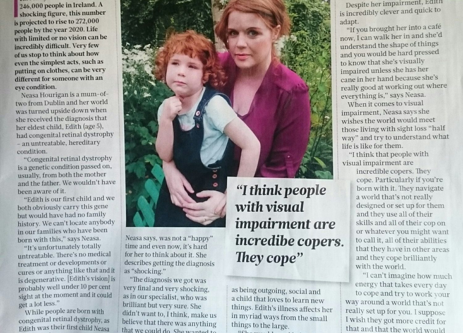 I talked to Woman’s Way about what it’s like to support a visually impaired child and to let people know about the section of the conference that allows the public to ask the experts questions. Now in its fifth year, the Public Engagement Day offers people a unique opportunity to engage with leading clinicians and researchers and provides a platform for Irish patients to learn about their condition and the research that is aiming to find therapies to treat it.