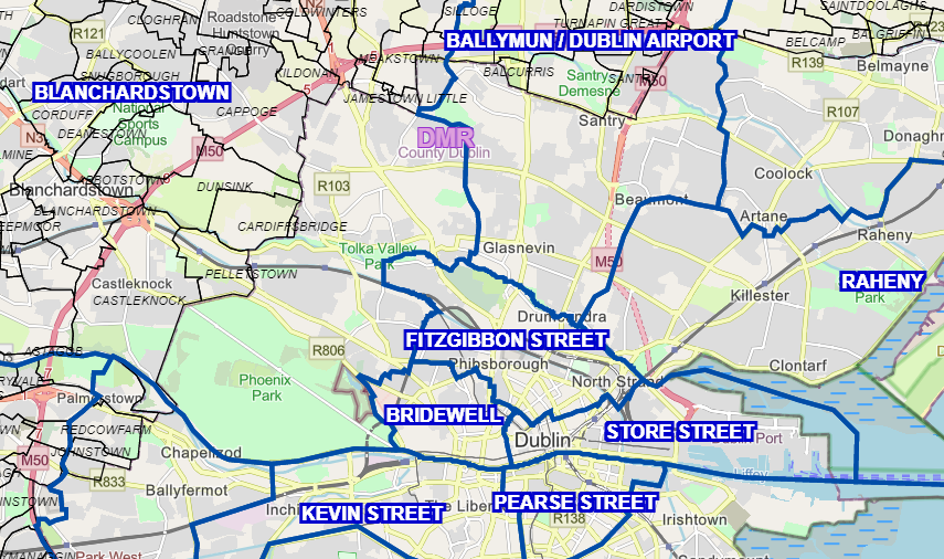 The Dublin Central constituency contains the following Dublin Metropolitan Region divisions: